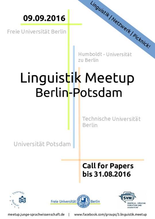 Wir freuen uns, am 09.09.2016 das 3. Linguistik Meetup Berlin-Potsdam an der FU Berlin ausrichten zu dürfen!